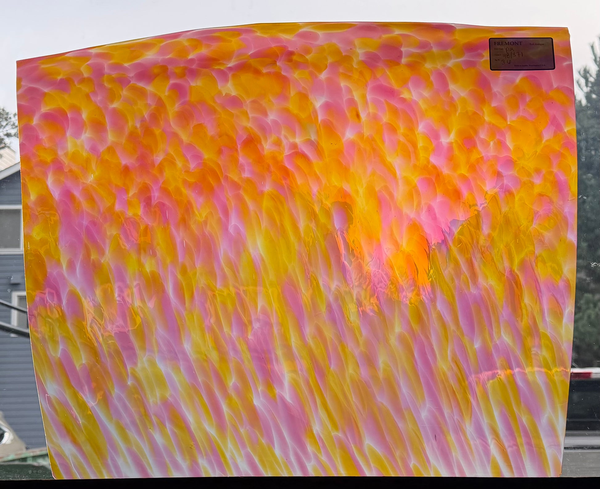Fremont glass is mouth blown, first into a cylinder, then scored open and flattened, no two pieces will be alike. Bubbles, small creases, marks from the flattening process and other human touches may be visible. Pieces may be irregularly shaped. We think you'll find the luminosity unparalleled and the quality of the color exquisite.