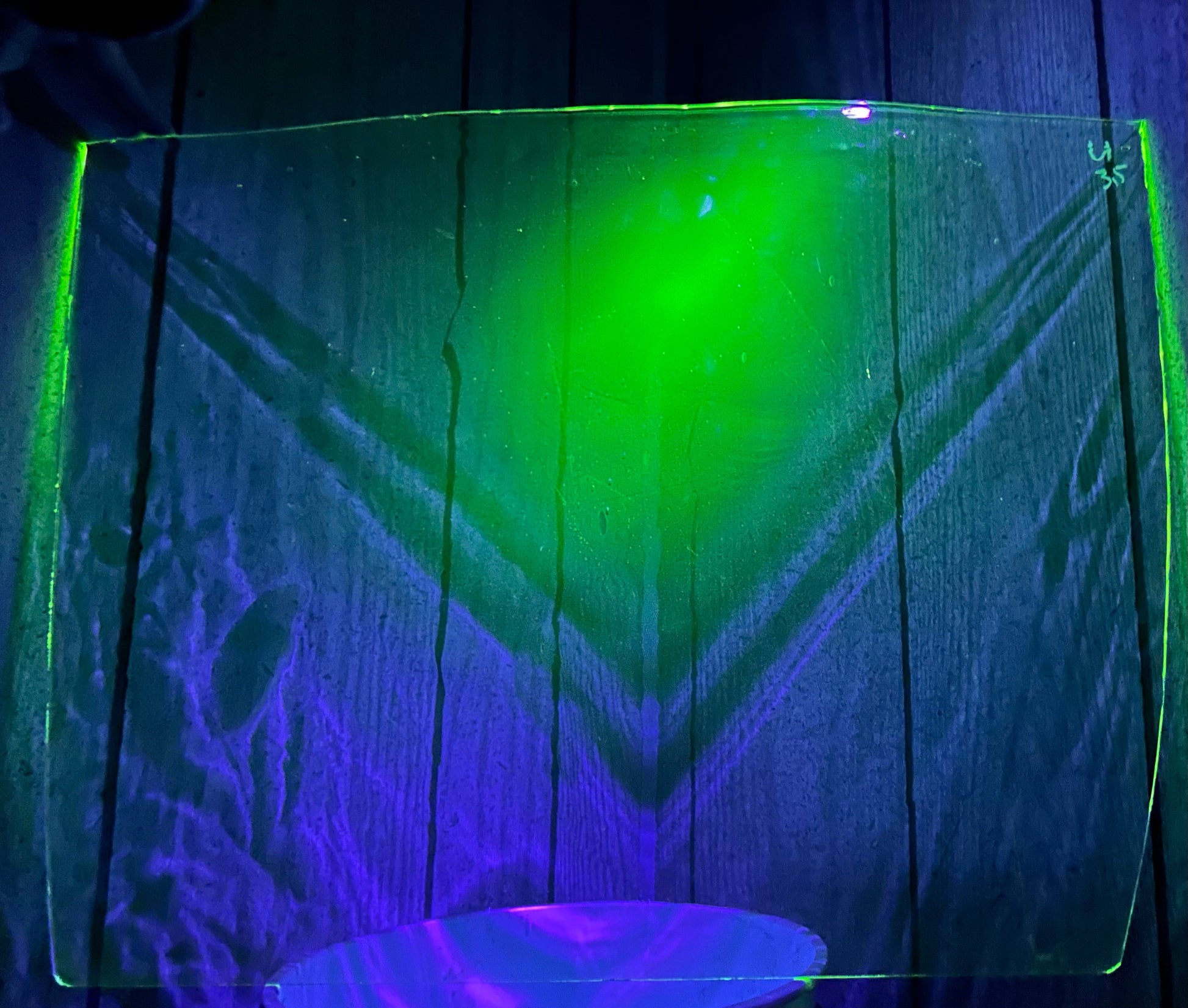 Uranium Transparent glows with black light. Full sheets are shipped in boxes or by crate order. Sheets can be cut in half to save on shipping costs. Crates hold a minimum of 10 sheets and max of 38. Crating fee is $75 plus freight.