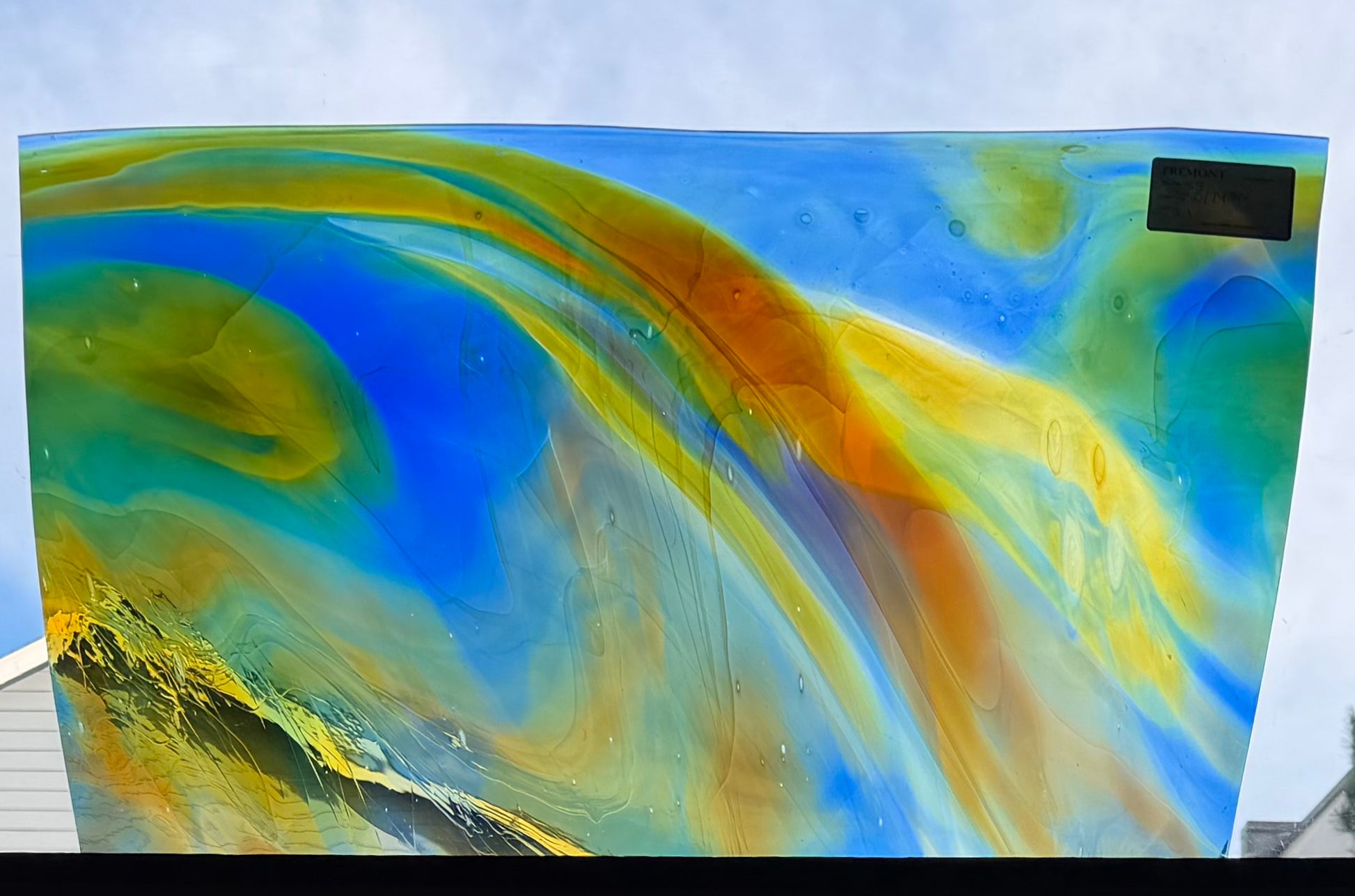 Fremont glass is mouth blown, first into a cylinder, then scored open and flattened, no two pieces will be alike. Bubbles, small creases, marks from the flattening process and other human touches may be visible. Pieces may be irregularly shaped. We think you'll find the luminosity unparalleled and the quality of the color exquisite.