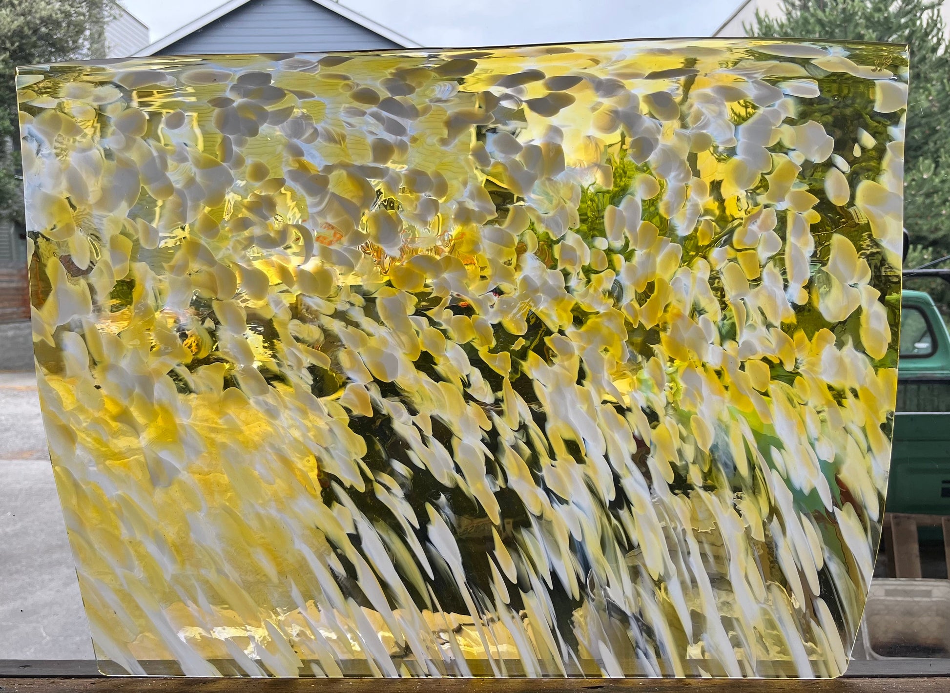 Fremont glass is perfectly imperfect. Because Fremont glass is mouth blown, first into a cylinder, then scored open and flattened, no two pieces will be alike. Bubbles, small creases, marks from the flattening process and other human touches may be visible. Pieces may be irregularly shaped. We think you'll find the luminosity unparalleled and the quality of the color exquisite.