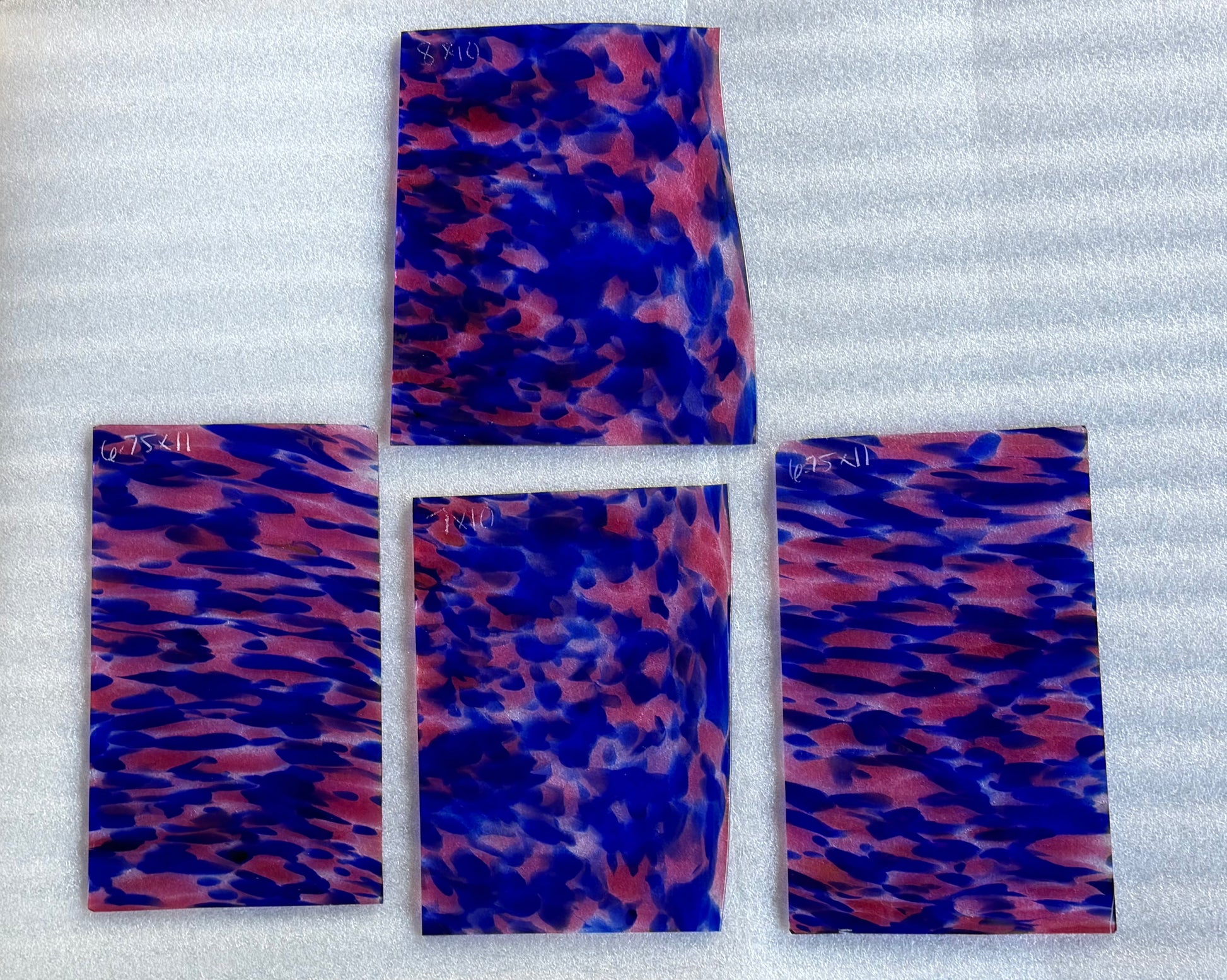 Fremont glass is perfectly imperfect. Because Fremont glass is mouth blown, first into a cylinder, then scored open and flattened, no two pieces will be alike. Bubbles, small creases, marks from the flattening process and other human touches may be visible. Pieces may be irregularly shaped. We think you'll find the luminosity unparalleled and the quality of the color exquisite.