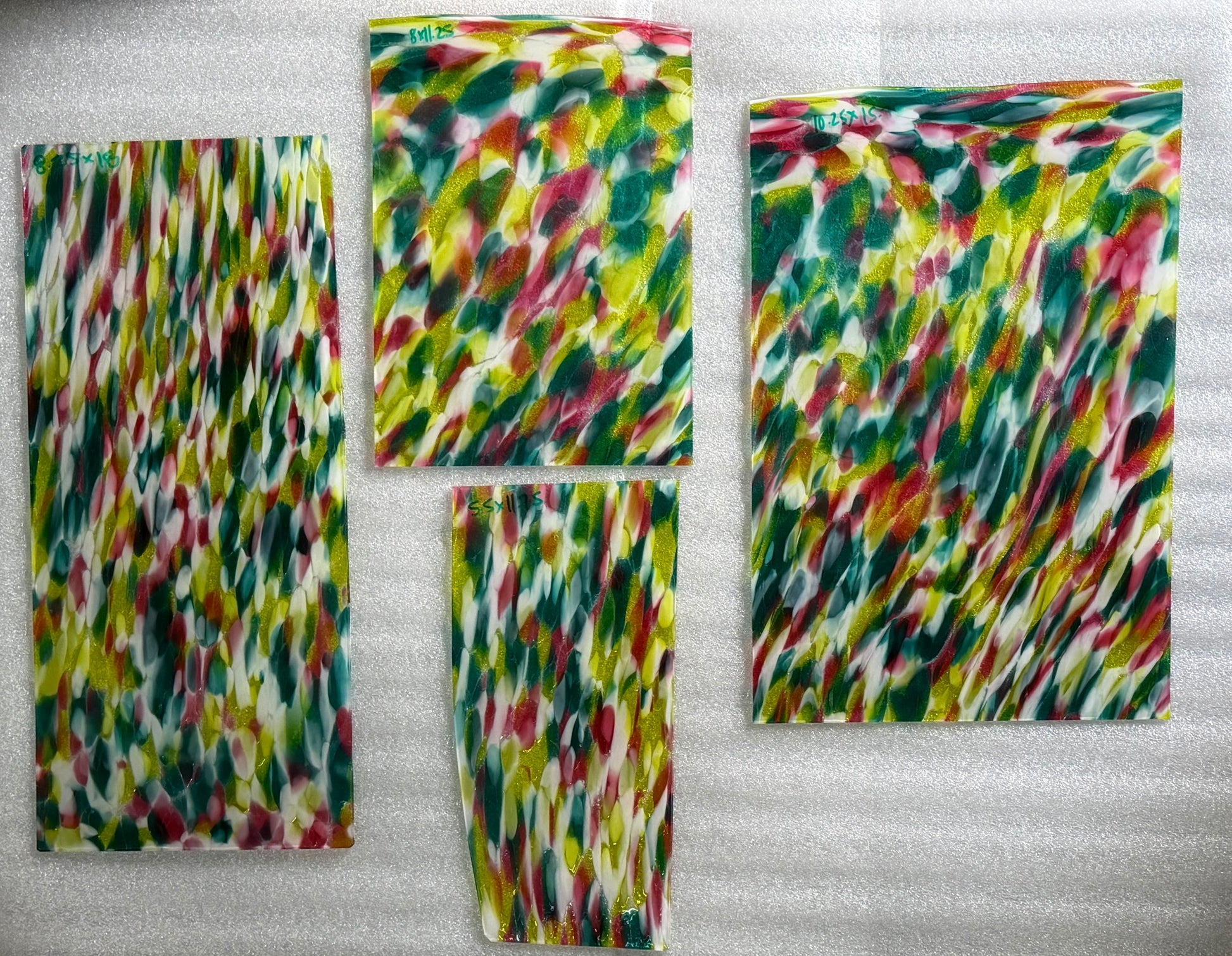 Fremont glass is perfectly imperfect. Because Fremont glass is mouth blown, first into a cylinder, then scored open and flattened, no two pieces will be alike. Bubbles, small creases, marks from the flattening process and other human touches may be visible. Pieces may be irregularly shaped. We think you'll find the luminosity unparalleled and the quality of the color exquisite.