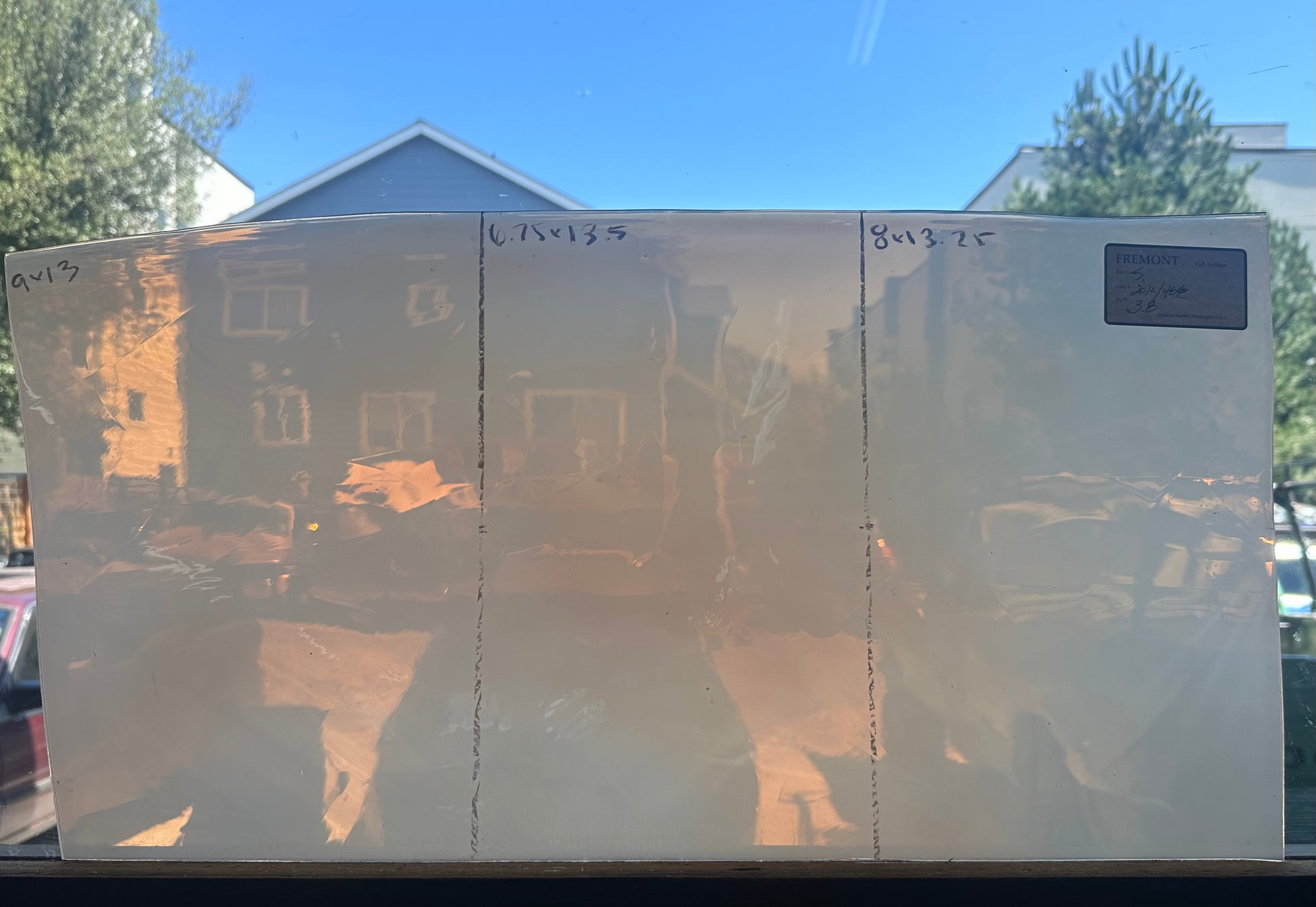 Fremont antique glass is perfectly imperfect. Because Fremont glass is mouth blown, first into a cylinder, then scored open and flattened, no two pieces will be alike. Bubbles, small creases, marks from the flattening process and other human touches may be visible. Pieces may be irregularly shaped. We think you'll find the luminosity unparalleled and the quality of the color exquisite.