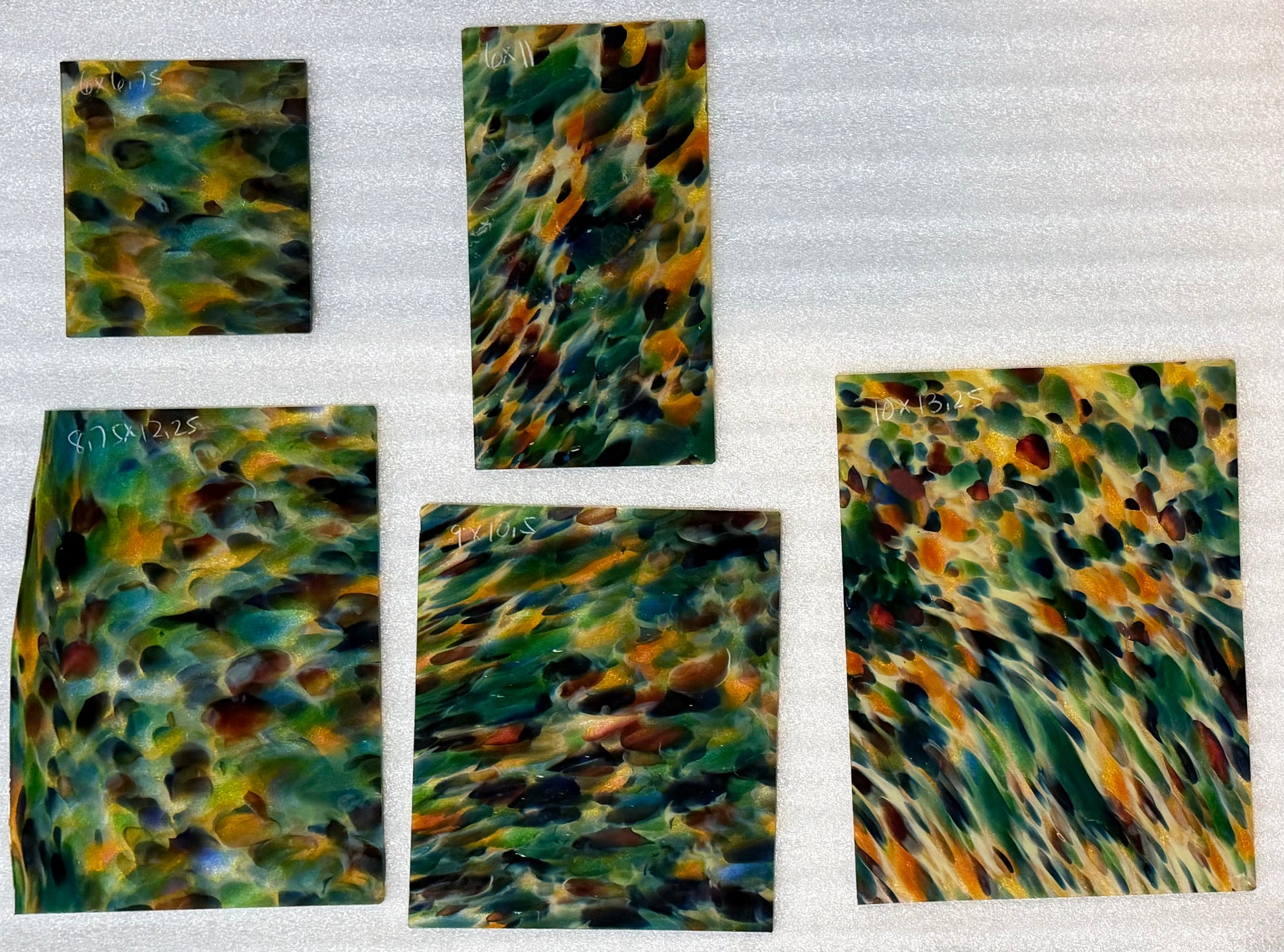 Fremont antique glass is perfectly imperfect. Because Fremont glass is mouth blown, first into a cylinder, then scored open and flattened, no two pieces will be alike. Bubbles, small creases, marks from the flattening process and other human touches may be visible. Pieces may be irregularly shaped. We think you'll find the luminosity unparalleled and the quality of the color exquisite.