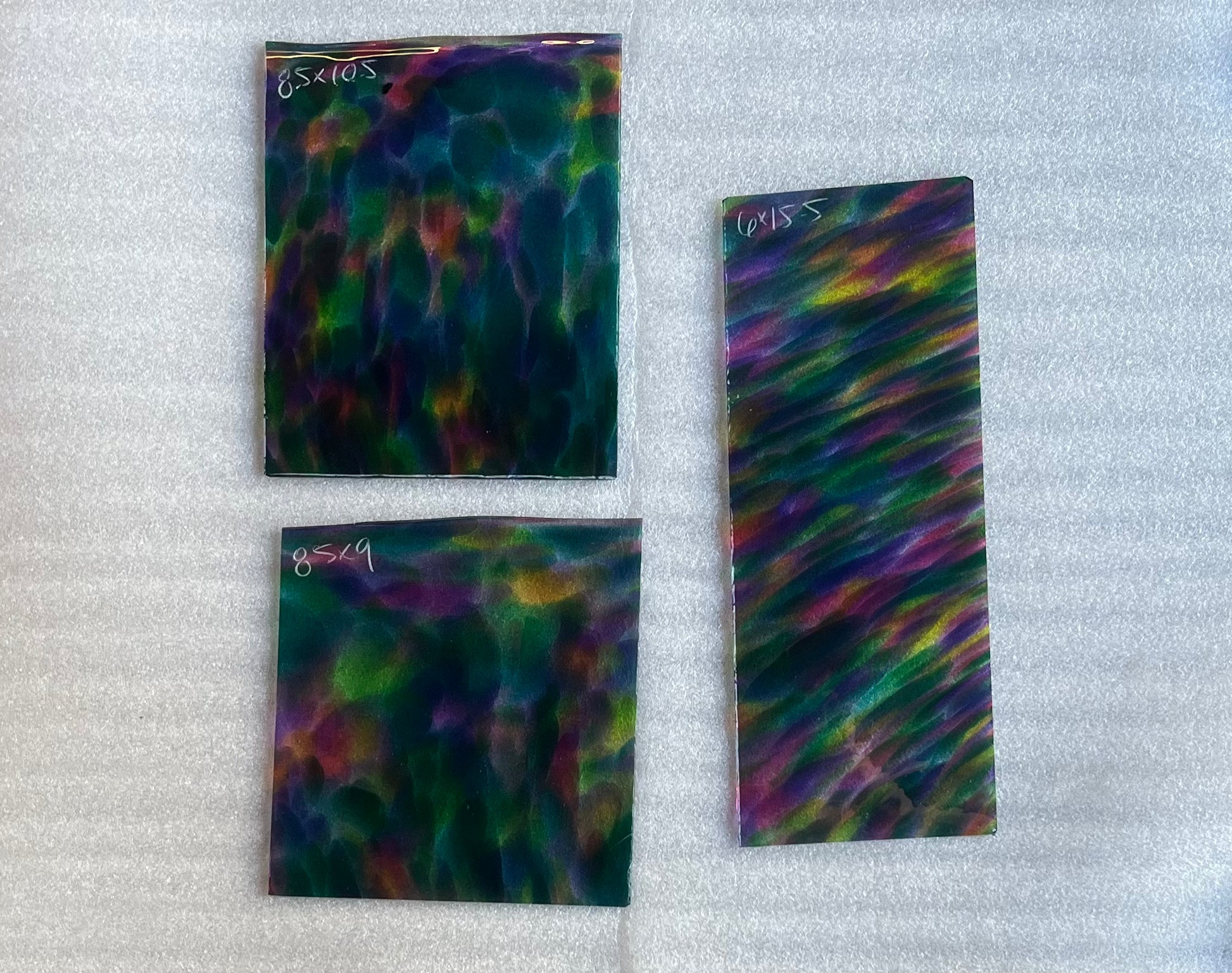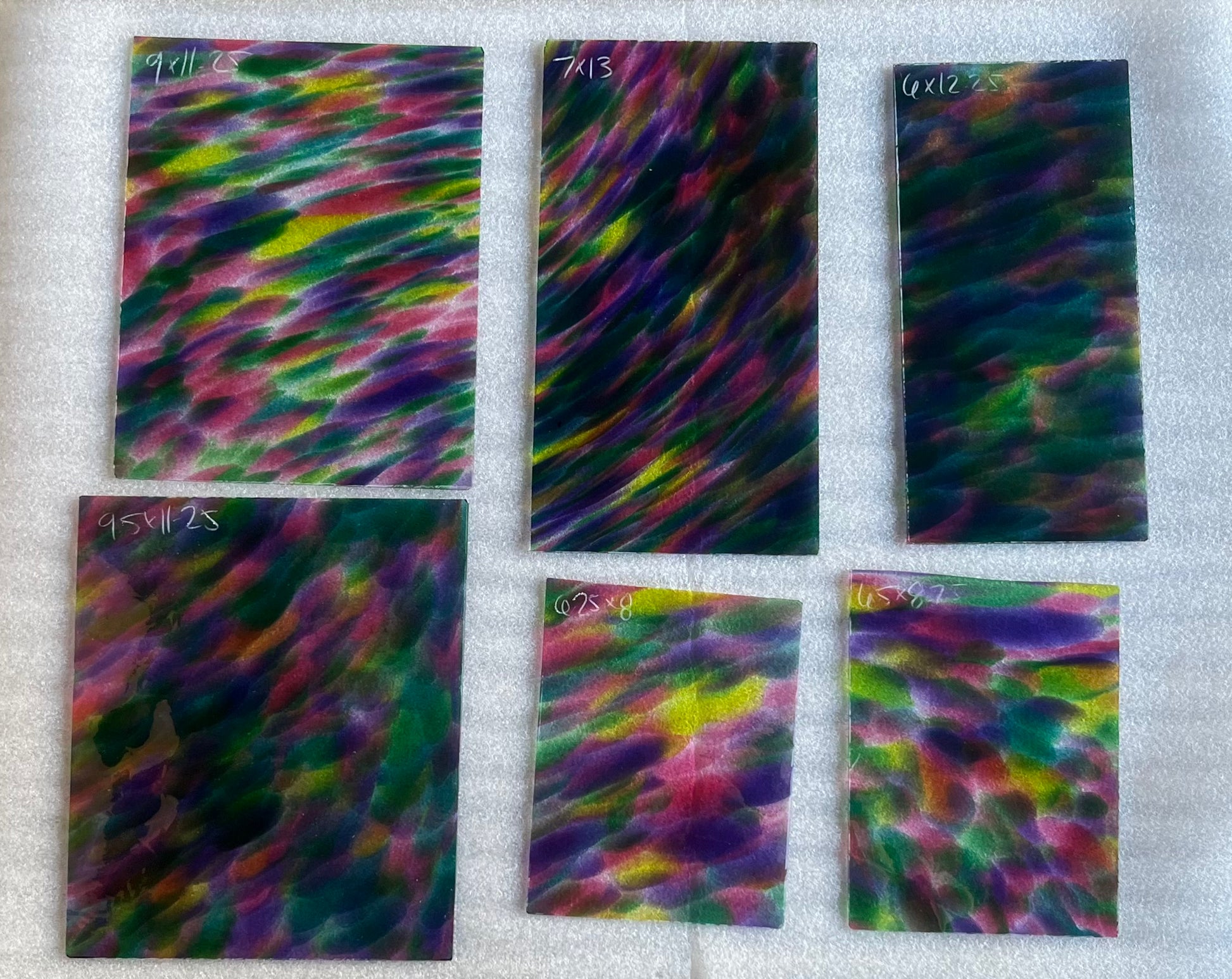 Fremont glass is perfectly imperfect. Because Fremont glass is mouth blown, first into a cylinder, then scored open and flattened, no two pieces will be alike. Bubbles, small creases, marks from the flattening process and other human touches may be visible. Pieces may be irregularly shaped. We think you'll find the luminosity unparalleled and the quality of the color exquisite.