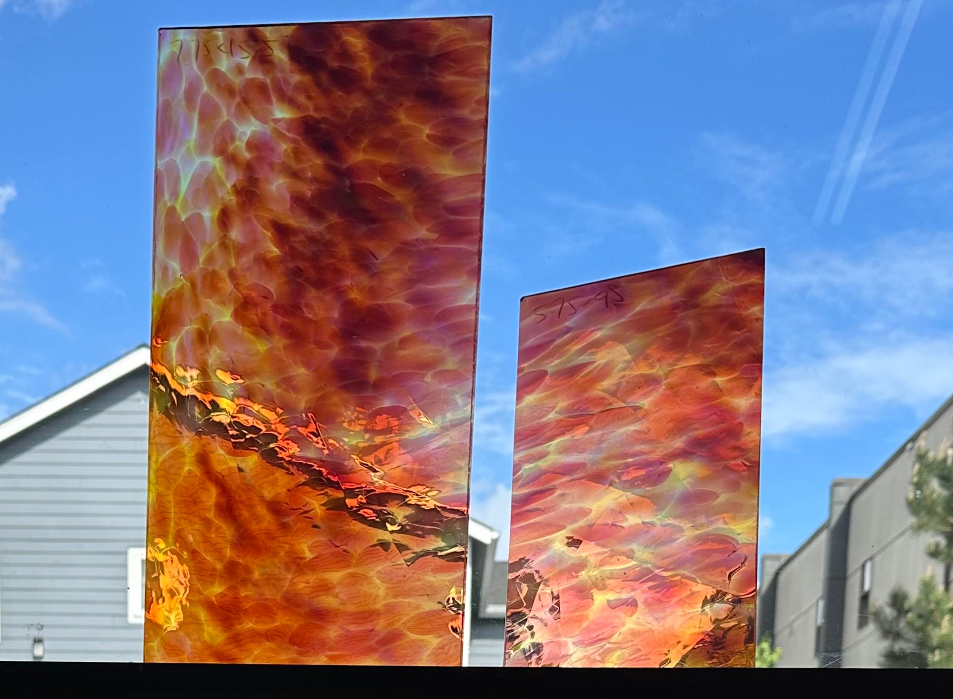 Fremont glass is perfectly imperfect. Because Fremont glass is mouth blown, first into a cylinder, then scored open and flattened, no two pieces will be alike. Bubbles, small creases, marks from the flattening process and other human touches may be visible. Pieces may be irregularly shaped. We think you'll find the luminosity unparalleled and the quality of the color exquisite.
