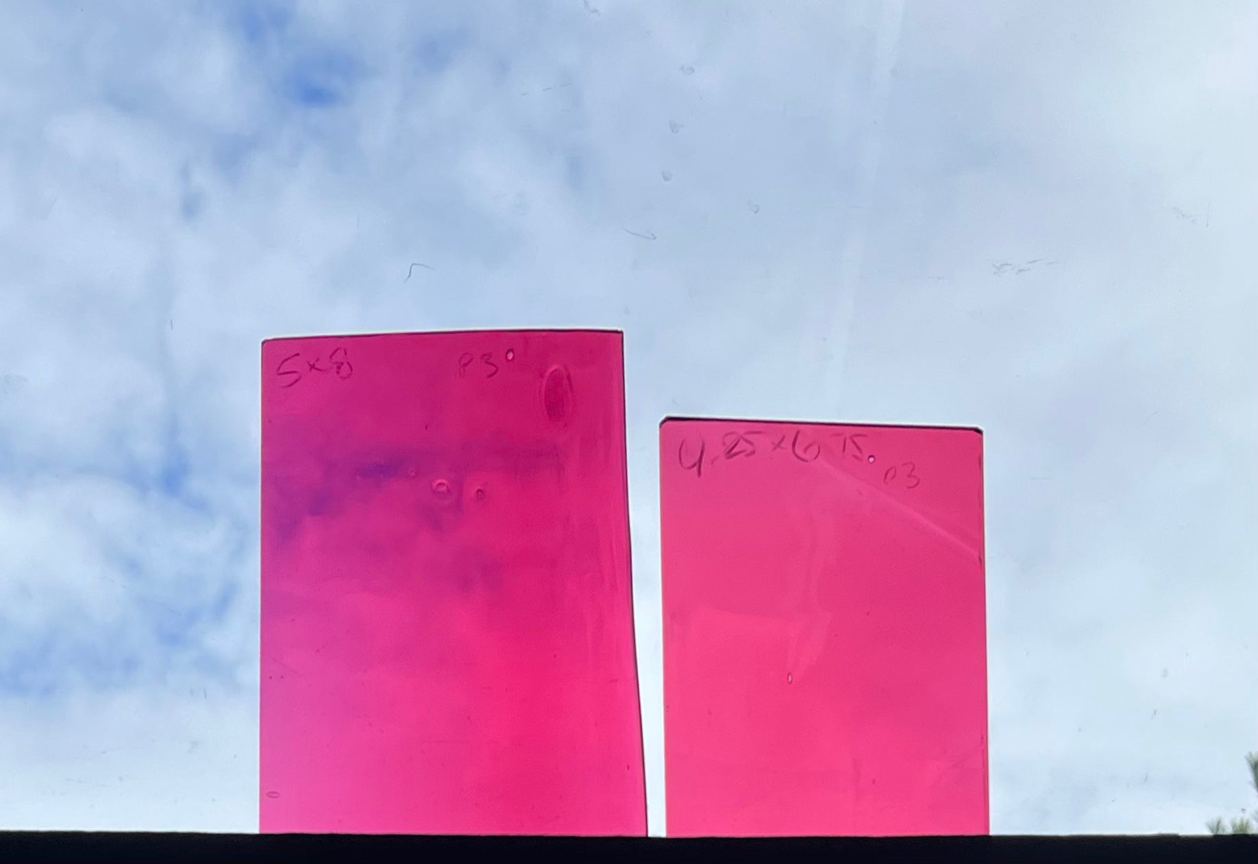 Fremont glass is perfectly imperfect. Because Fremont glass is mouth blown, first into a cylinder, then scored open and flattened, no two pieces will be alike. Bubbles, small creases, marks from the flattening process and other human touches may be visible. Pieces may be irregularly shaped. We think you'll find the luminosity unparalleled and the quality of the color exquisite.