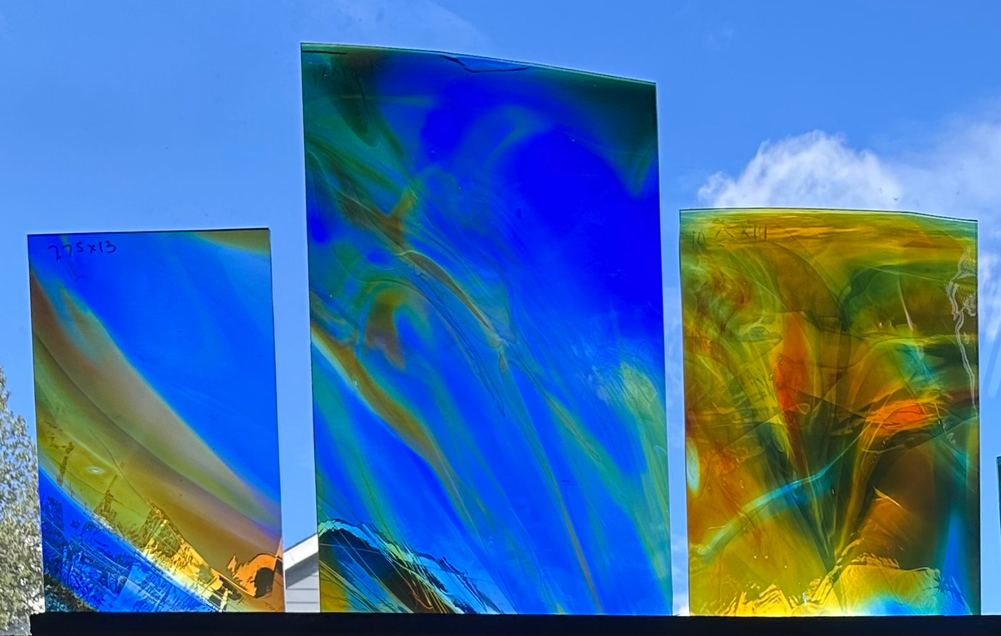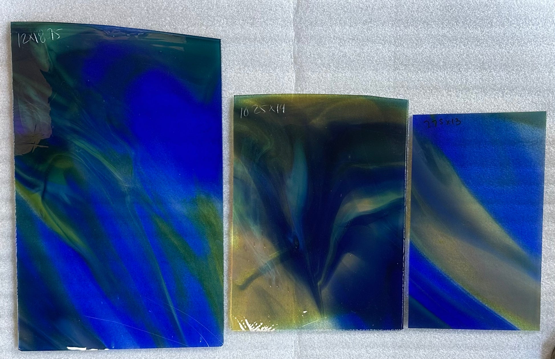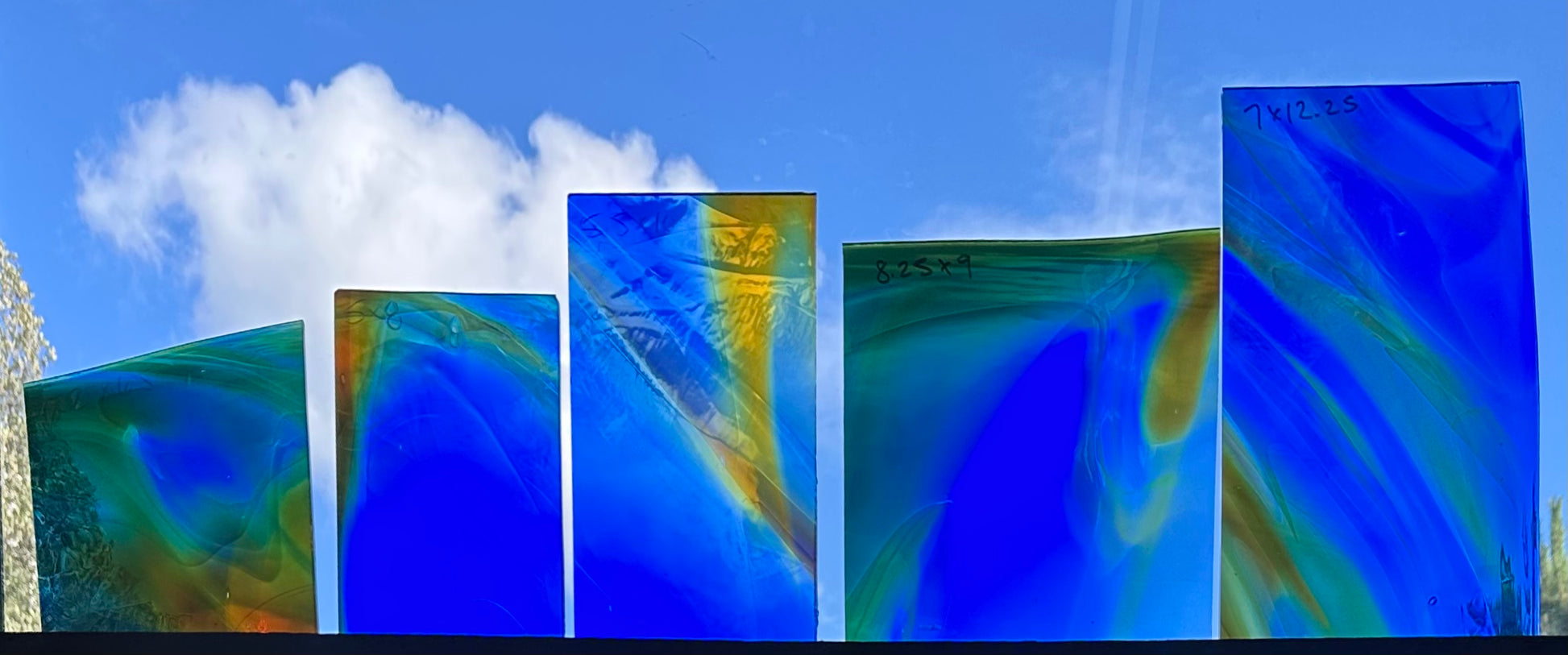 Fremont antique glass is perfectly imperfect. Because Fremont glass is mouth blown, first into a cylinder, then scored open and flattened, no two pieces will be alike. Bubbles, small creases, marks from the flattening process and other human touches may be visible. Pieces may be irregularly shaped. We think you'll find the luminosity unparalleled and the quality of the color exquisite.