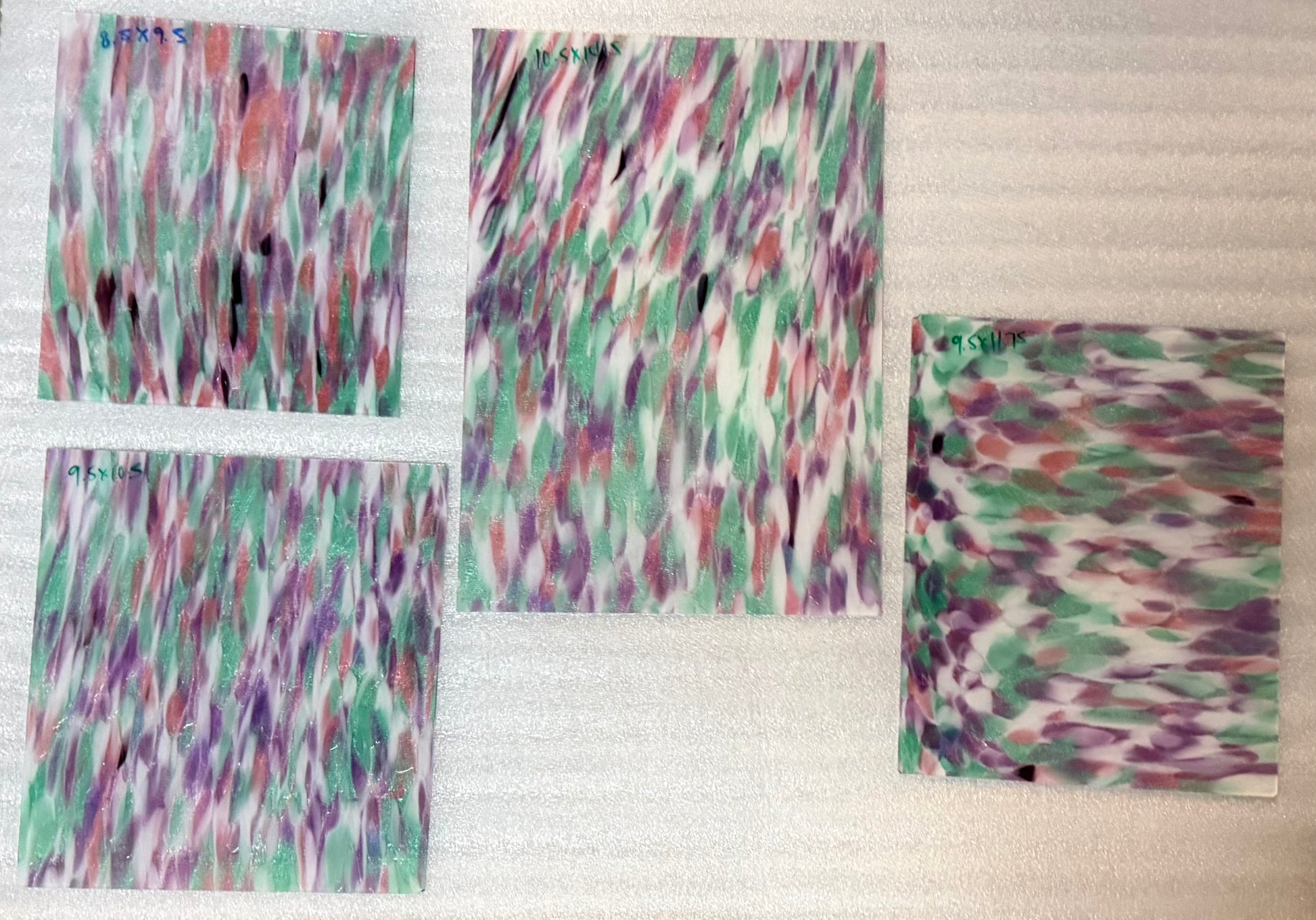 Fremont antique glass is perfectly imperfect. Because Fremont glass is mouth blown, first into a cylinder, then scored open and flattened, no two pieces will be alike. Bubbles, small creases, marks from the flattening process and other human touches may be visible. Pieces may be irregularly shaped. We think you'll find the luminosity unparalleled and the quality of the color exquisite.