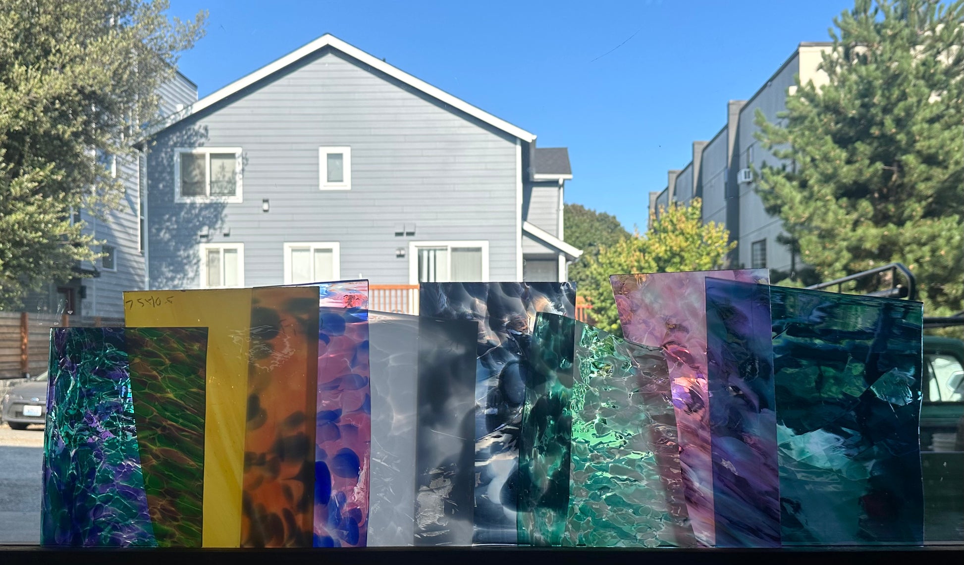 Fremont glass is mouth blown, first into a cylinder, then scored open and flattened, no two pieces will be alike. Bubbles, small creases, marks from the flattening process and other human touches may be visible. Pieces may be irregularly shaped. We think you'll find the luminosity unparalleled and the quality of the color exquisite.