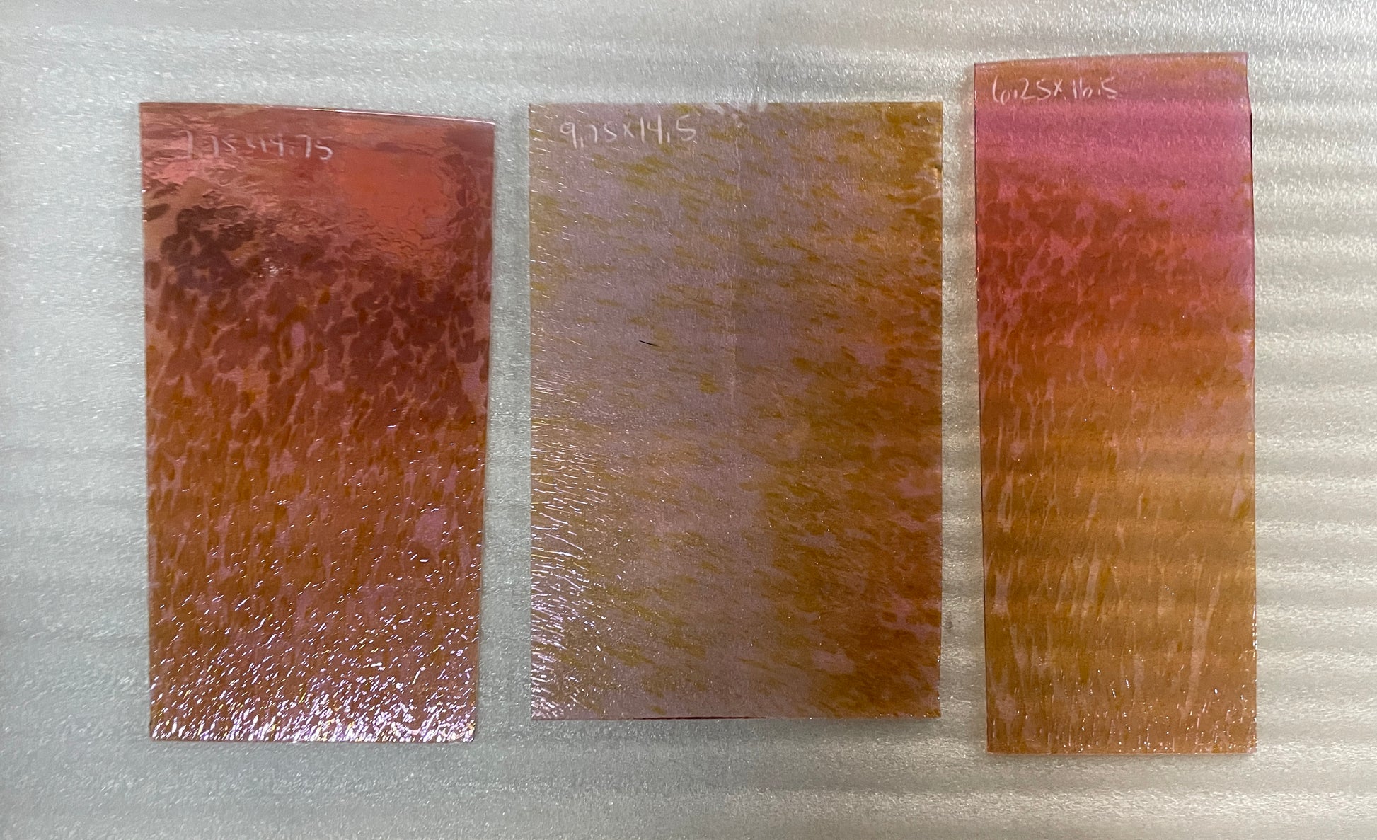 Fremont glass is perfectly imperfect. Because Fremont glass is mouth blown, first into a cylinder, then scored open and flattened, no two pieces will be alike. Bubbles, small creases, marks from the flattening process and other human touches may be visible. Pieces may be irregularly shaped. We think you'll find the luminosity unparalleled and the quality of the color exquisite.